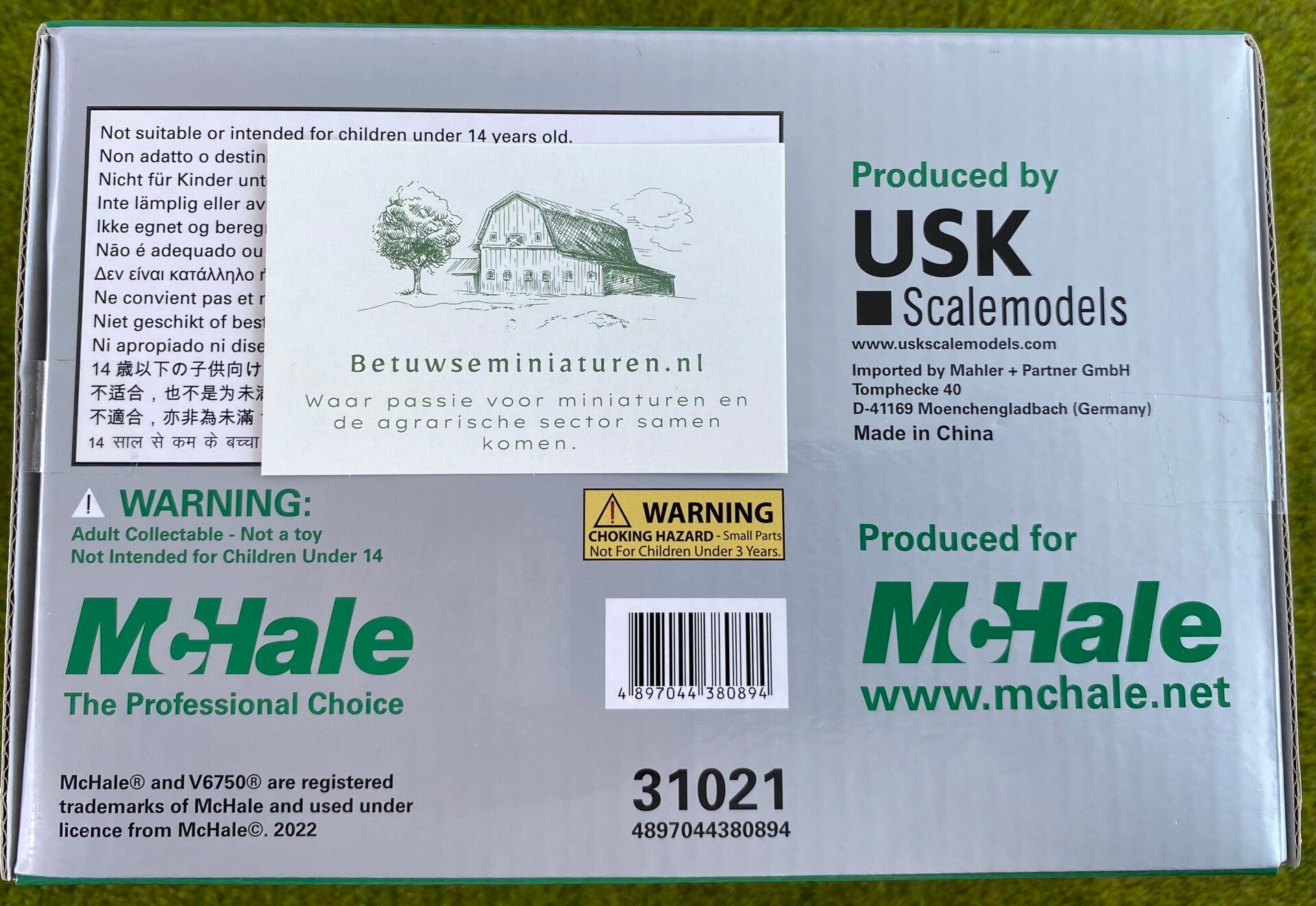 Een prachtige en realistisch uitgevoerde McHale V6750 rondebalenpers in schaal 1:32, geproduceerd door USK Scalemodels. Dit miniatuur is een zeer gedetailleerde weergave van de moderne McHale-pers en vormt een absolute blikvanger in iedere landbouwminiatuurcollectie.